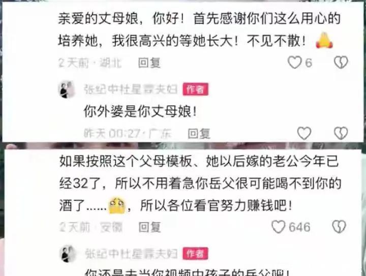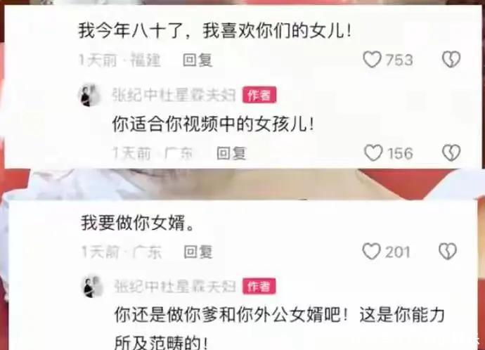 不少网友在评论区留言“求娶”,相关留言随后被张纪中怒怼。其中有网友表示“我要做你女婿”,张纪中回应“你还是做你爹和你外公女婿吧”,网友称其妻子为“丈母娘”,张纪中怒怼“你外婆是你丈母娘”。